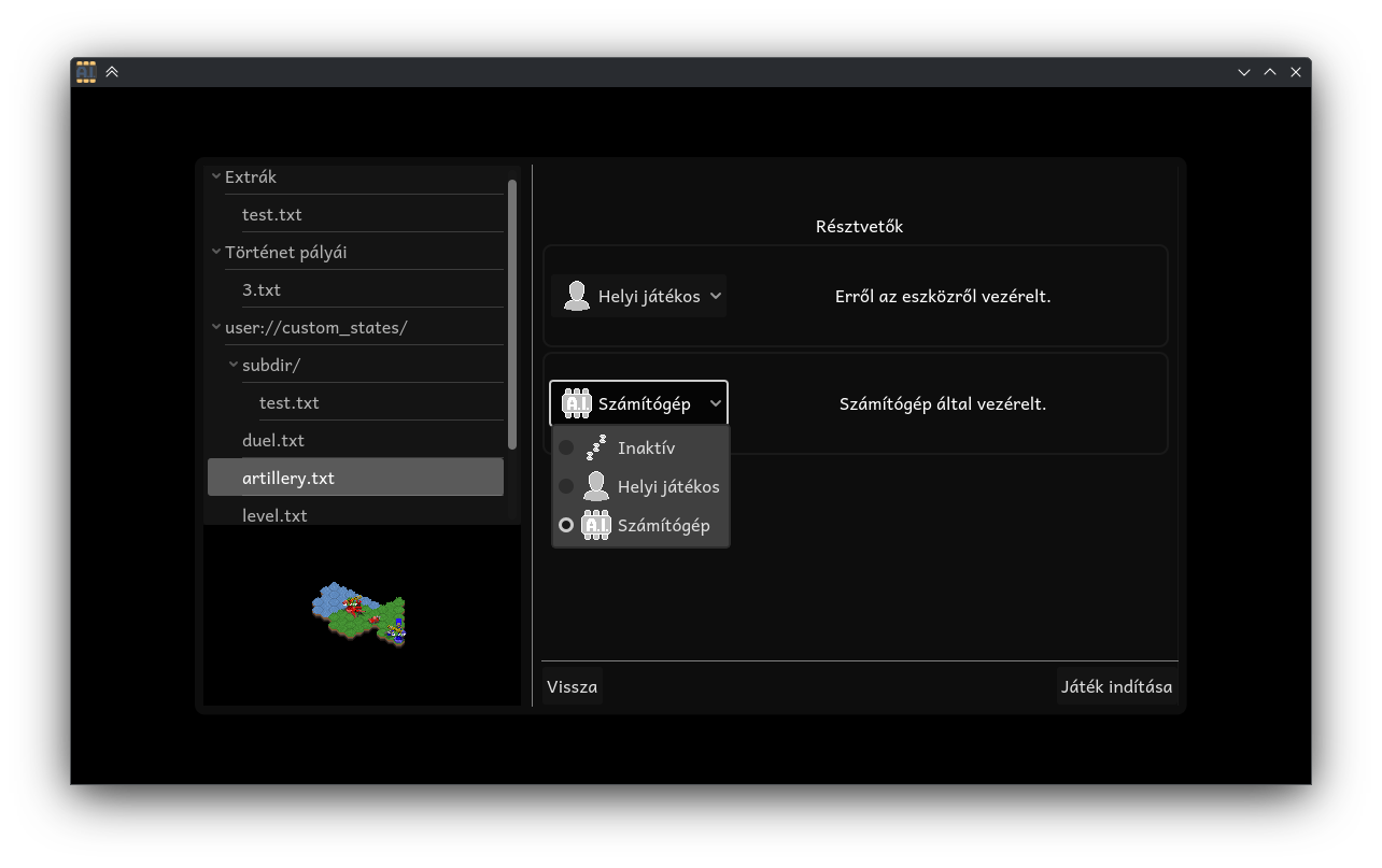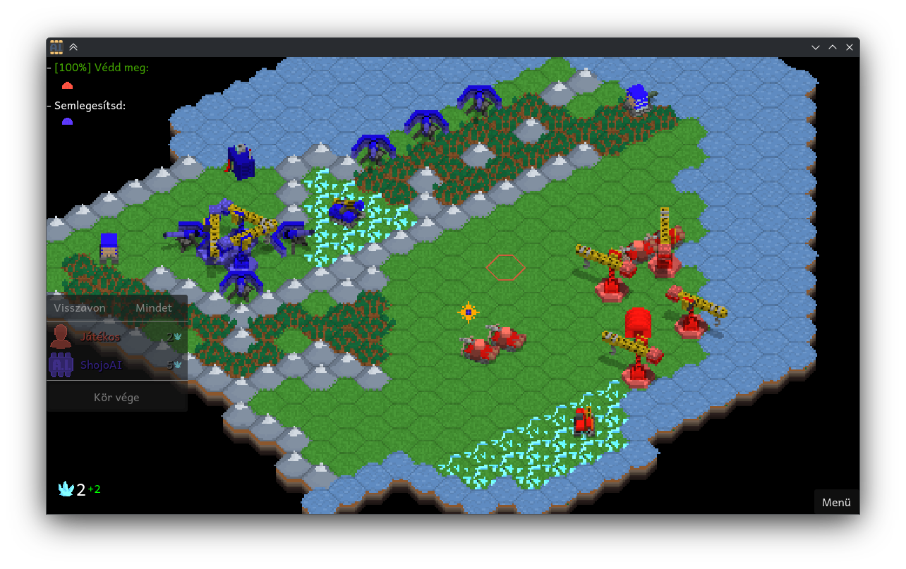 - Az AI elég buta. Az első két megvalósítás amivel próbálkoztam az vagy lassú, vagy nagyon béna volt, a jelenlegit pedig pár nappal a határidő előtt találtam k, ezért nem nagyon volt idő finomhangolni.